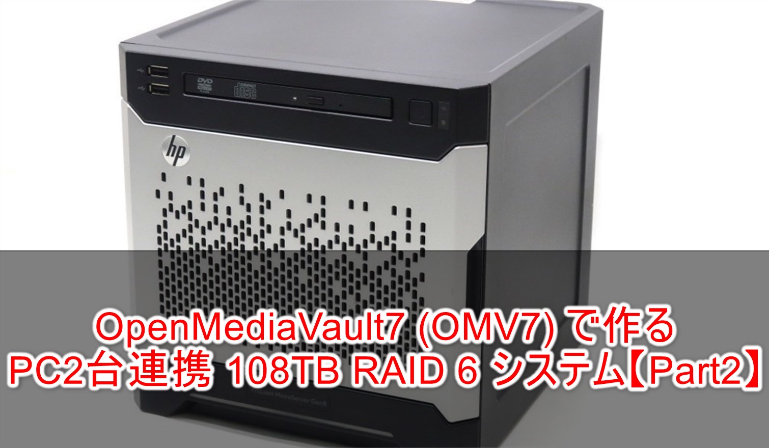 この記事では、PC2台を連携して 18TB x 6台 (=108TB) + 2台(エラー訂正ディスク) の RAID6 システムを実現します。なお、先に OpenMediaVault7 (OMV7) で作る PC1台 54TB RAID5 システム【Part 1】【Part 2】を読まれている事を前提にしていますので、既にそちらで説明しているものは、項目だけ 列挙する事があります。